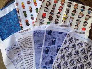 In other geeky/crafty news, we went to GenCon in Indianapolis in August. Talk about nerds! Holy cow! (I mean that in the nicest way possible! My husband and daughter had found "their people." Aaron and I, however, felt a little left out because there wasn't much video gaming stuff.) Anyway, there was a booth for Three Geeks and a Needle, and I couldn't resist purchasing a small bag and a key fob. But what really caught my eye was the fabric they used. It was sooooo geeky! So, I immediately went online to try to find the fabric. After much searching, I discovered Spoonflower. And the angels sang! So much beautiful fabric! I ordered enough of this to make a bag. I also ordered several 8x8 swatches of Doctor Who fabrics to make another case for my XL, like this and this and this. I'm so excited and can't wait for the fabric to arrive!!!